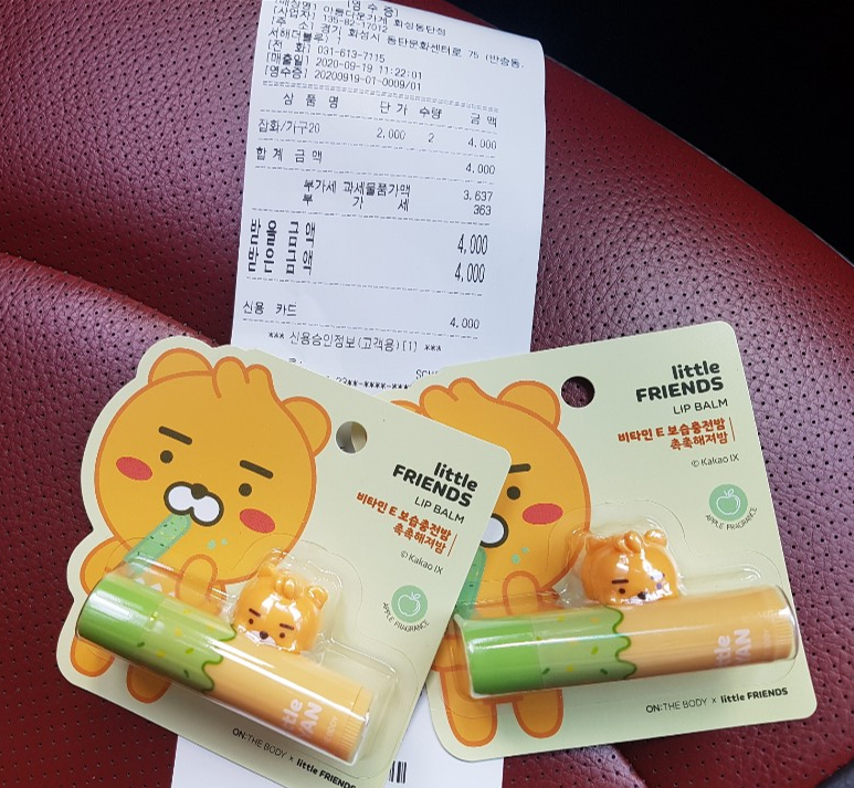 나오는길에 립밤 2개를 4천원에 구매해서 와이프와 자녀에게 선물~~~ㅎ