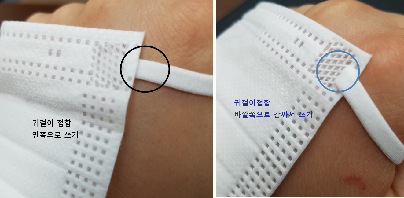 조금 더 좋은 품질의 마스크를 쓰는 게 좋은 방법이지만 어쩔 수 없이 일회용을 착용하여야 하는 경우에는 참고하시면 좋을 것 같습니다.