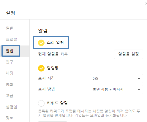 카카오톡 PC버전 알림창 미리보기 방지 소리끄기