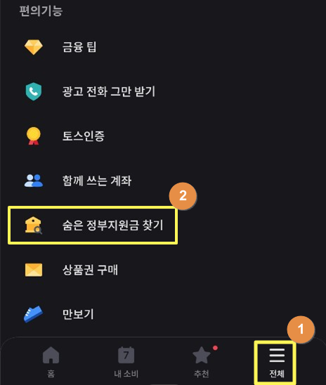 여기서 숨은 정부 지원금 찾기를
