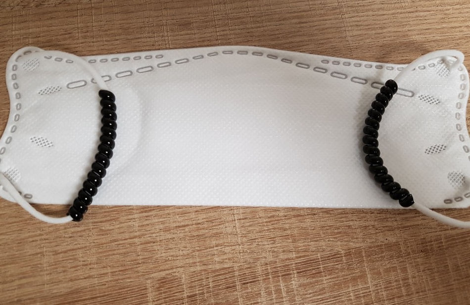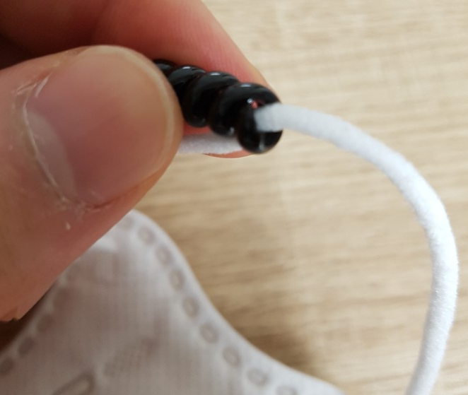 마스크 귀걸이 끈을 스프링에 감듯이 감아주면 마스크의 줄이 스프링 안으로 모두 들어가게 됩니다.