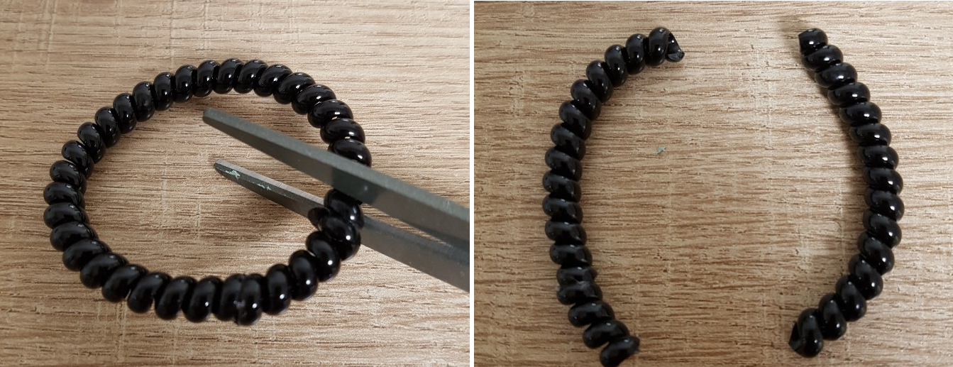 가위로 원형으로 되어 있는 스프링을 반으로 뚝 잘라 2개로 만들어 주시면 됩니다.
