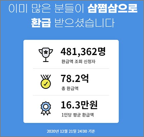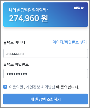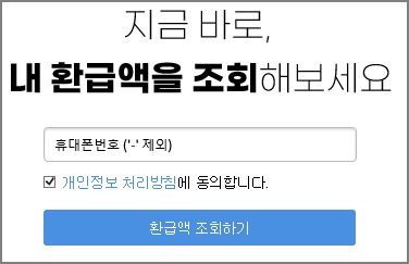 입력하여 환급금 조회를 눌러 주시면 됩니다.