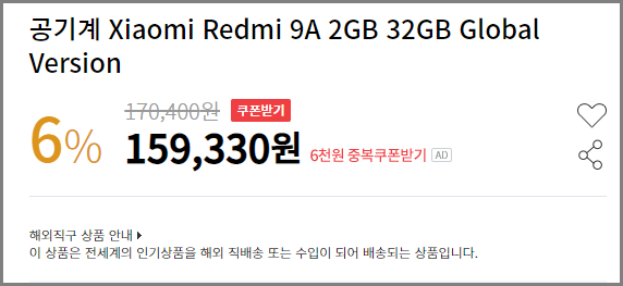 샤오미 홍미 9A 가격확인하기