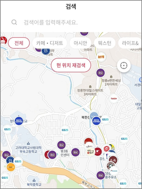 똑같이 뭐머지 포인트 어플에 접속한 후에 내 주변 결제하기를 눌러줍니다 또는 검색을 눌러 주어서 상호를 검색하셔도 됩니다