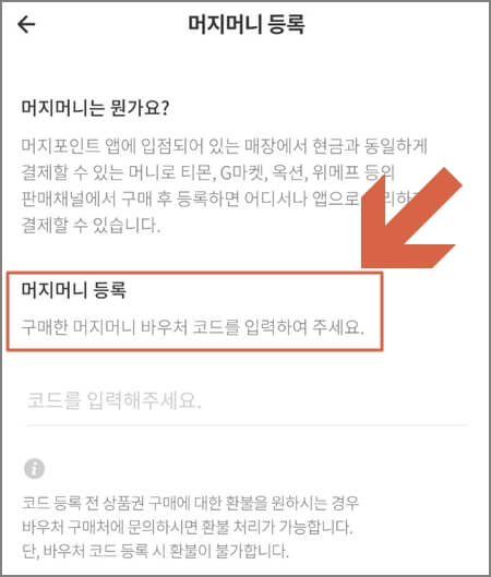 머지 포인트 앱 열기 - 내 정보 - 머지 머니 등록 전화로 돌아가신 다음에 쿠폰으로 받은 번호로 입력하여 주시면 됩니다