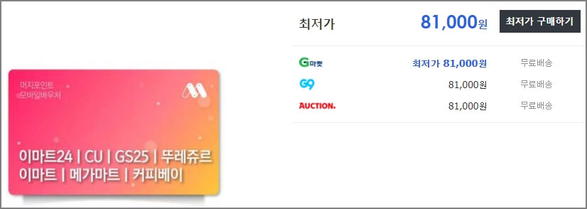 현시점에서는 81,000원에 구매를 할 수가 있게 되어 있네요. 본인이 원하는 곳에 접속하여 머지 포인트 구매 하여 주시면 됩니다