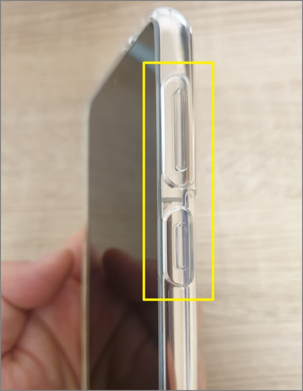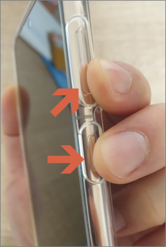 2. 핸드폰 오른쪽 끝 부분에 손날을 위치치해 주신후