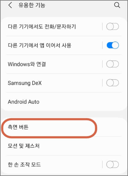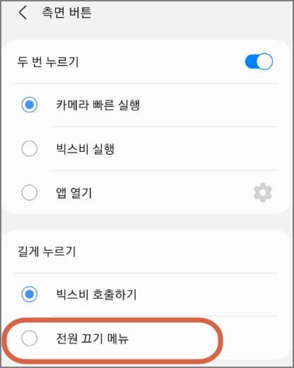 3. 갤러시 S21 측면버튼 설정변경으로 종료 버튼 만들기