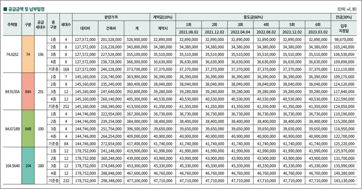 마지막으로 제일 중요한 가격 부분을 빼 먹을 수 없습니다. 평형별 가격 정보를 다음과 같이 요약 드립니다.