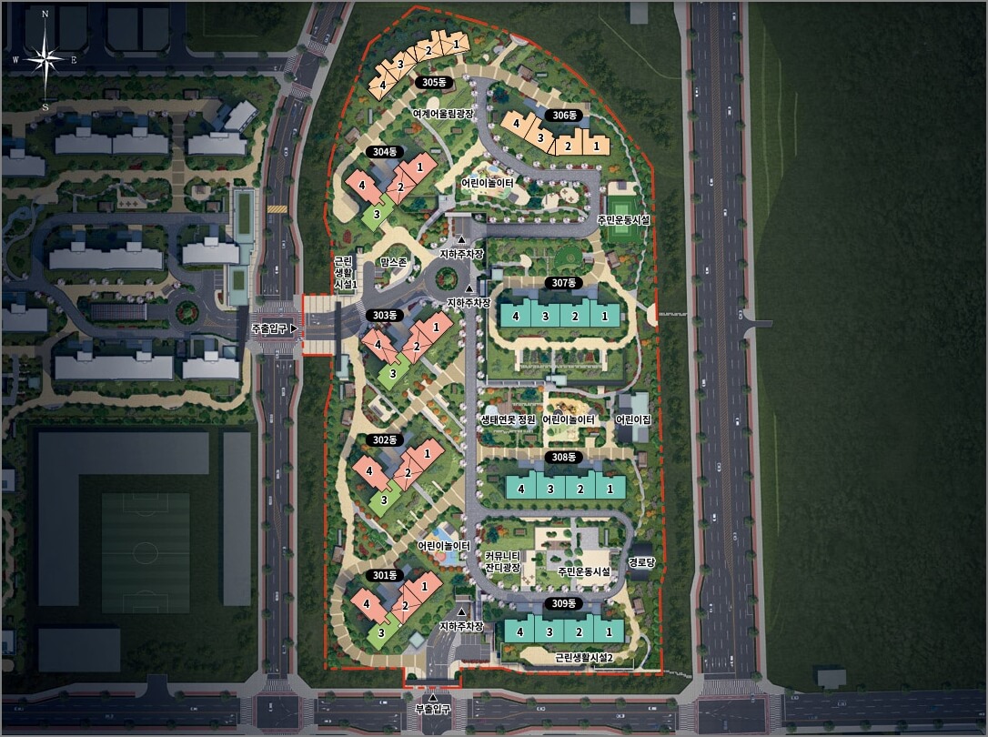 단지내 커뮤니티 시설은 다음과 같으니 아래의 사진을 참고해 주세요