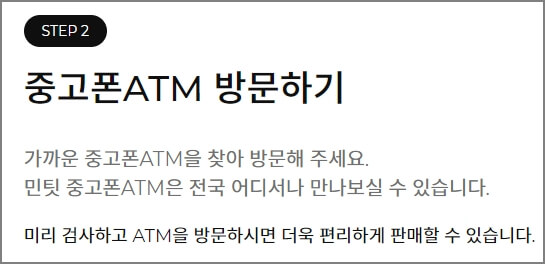 그러나 이제는 더 이상 그러지 않아도 될 것 같습니다. 민팃 이라는 중고폰을 ATM으로 판매할수 있는 비대면 시스템이 운영되고 있습니다.