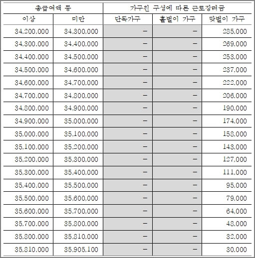 맞벌이 가구 : 3600만원 미만의 소득금액