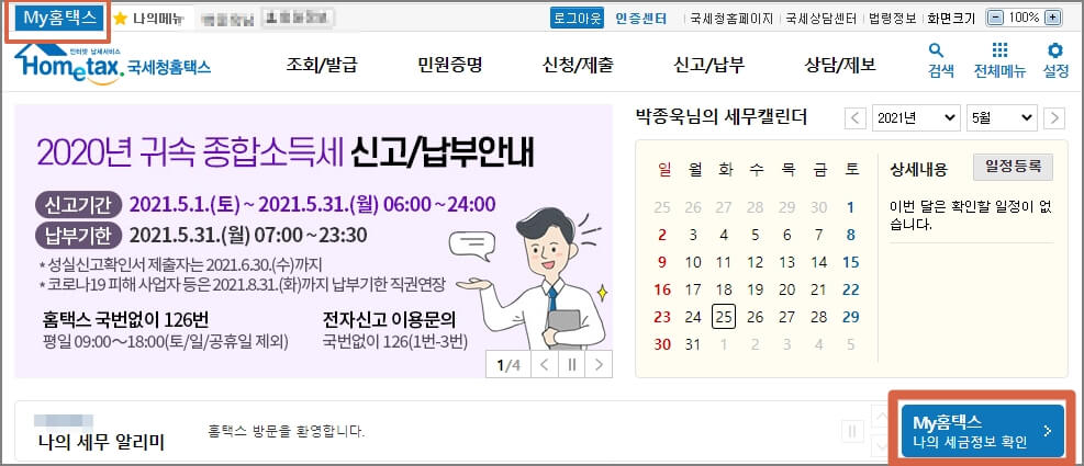 2. 세금을 납부하신 분이시라면 My 홈택스로 이동해 주세요