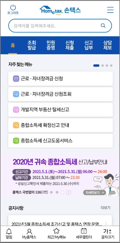 인터넷 조회방법은 홈택스 사이트와 온라인 어플 손택스를 설치하여 조회하면 가능합니다. 해당 바로가리를 아래와 같이 공유 드립니다.