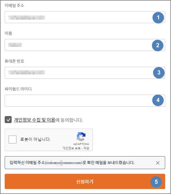 3. 이름 > 휴대폰 번호 >싸이월드 아이디(생각나실경우에만 입력)