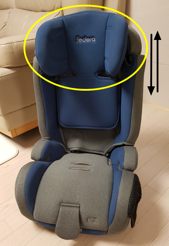 위 카시트는 사진에서 보이는것과 같이 머리부분을 잡아주는 저 부분이 아래위로 조절할수 있게 되어 있어 아이의 성장에 따라 위아래 또는 아이가 편하게 앉을수 있는 모습에 따라 어느정도 조절이 가능한 부분입니다.