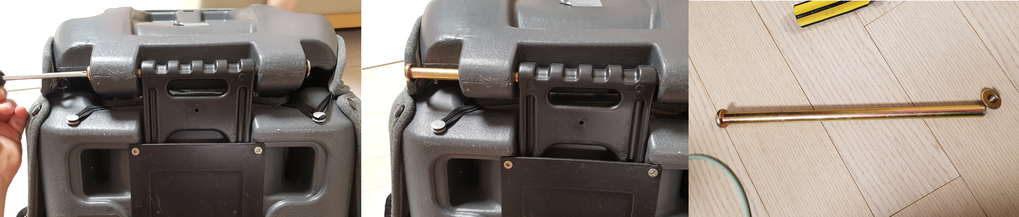 여기서 주의하셔야 할것은 나사가 어느 부위에 고정되어 있는것이 아니라, 나사와 나사가 연결되어 봉처럼 되어 있는구조입니다. 그러니까 이 나사를 풀기 위해서는 한쪽의 나사 머리를 드라이버로 잡아 주어야 풀릴수가 있습니다.