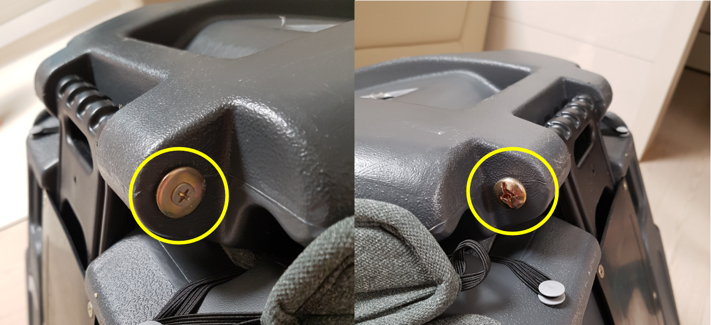 의자 안쪽으로 돌아와보면 등받이와 의자에 연결되어 있는 양쪽의 굵은 나사를 발견하실수 있을겁니다.