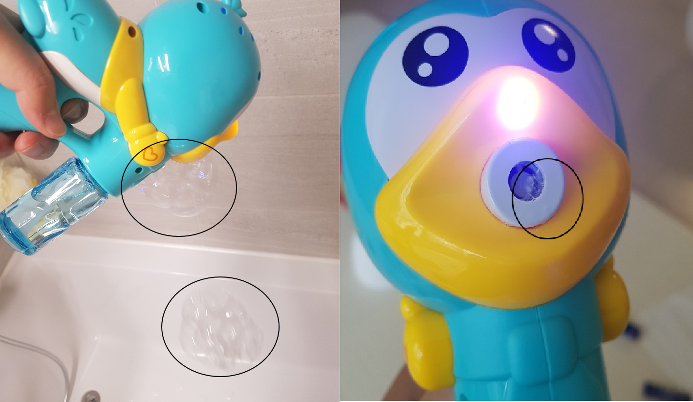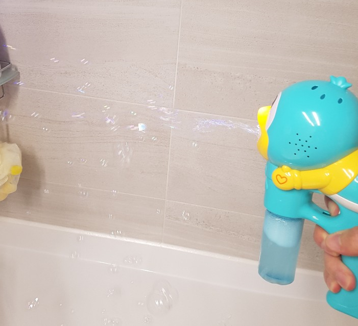 집에서 아이들 목욕할 때 주로 가지고 놀던 버블건이라 물이튀는 것은 당연하고 와이프로부터 전해 듣기를 작동이 안될거라는 말을 전해 듣게 됩니다.