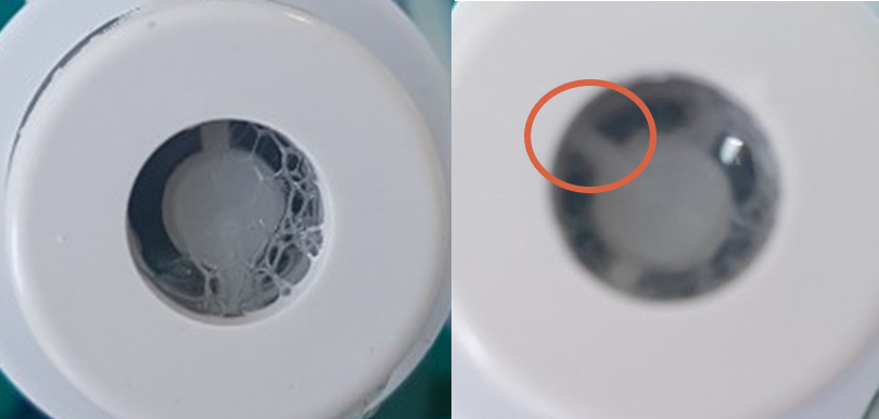 조치후 처음 몇번은 비누방울이 뭉쳐서 흘러 나왔습니다.